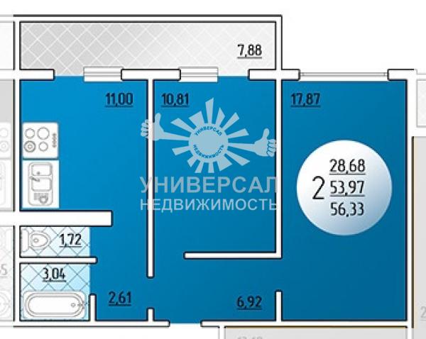 2-к квартира 56 м2