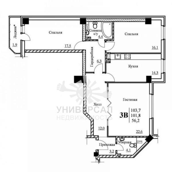 - Общая площадь: 104.0 м²
