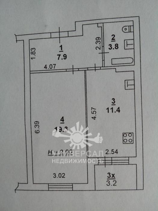 - Общая площадь: 39.0 м²