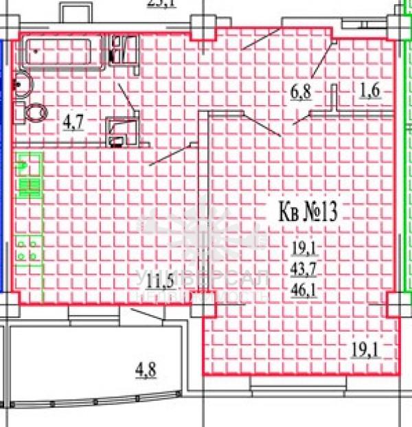 - Общая площадь: 46.0 м²