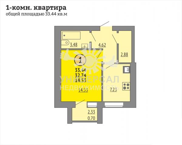 Продается однокомнатная квартира, 6/14 эт., 3 350 000 руб., Евдокимова, СЖМ