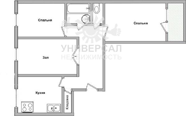 - Общая площадь: 56.0 м²