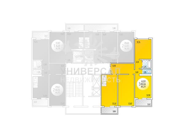 - Общая площадь: 85.0 м²