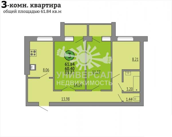 - Общая площадь: 63.0 м²