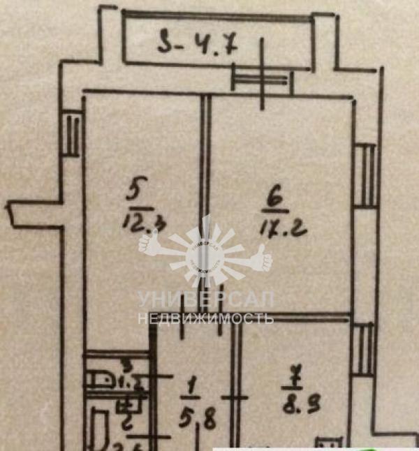 - Общая площадь: 57.0 м²