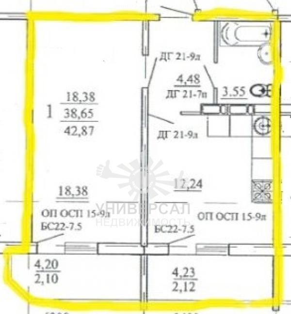 - Общая площадь: 43.0 м²