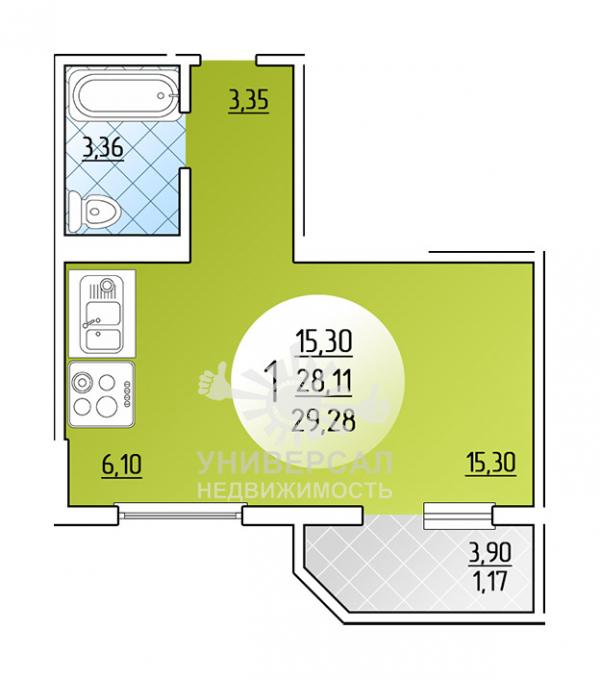 Продается квартира, 1-к, 3/16 эт., 1 544 000 руб., Петренко, Суворовский