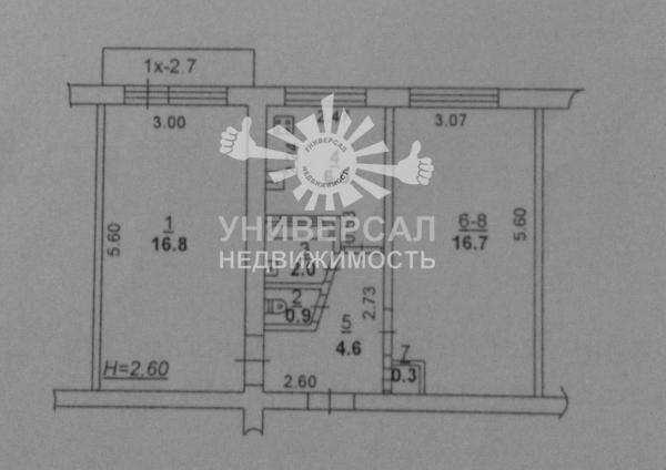 - Общая площадь: 46.0 м²