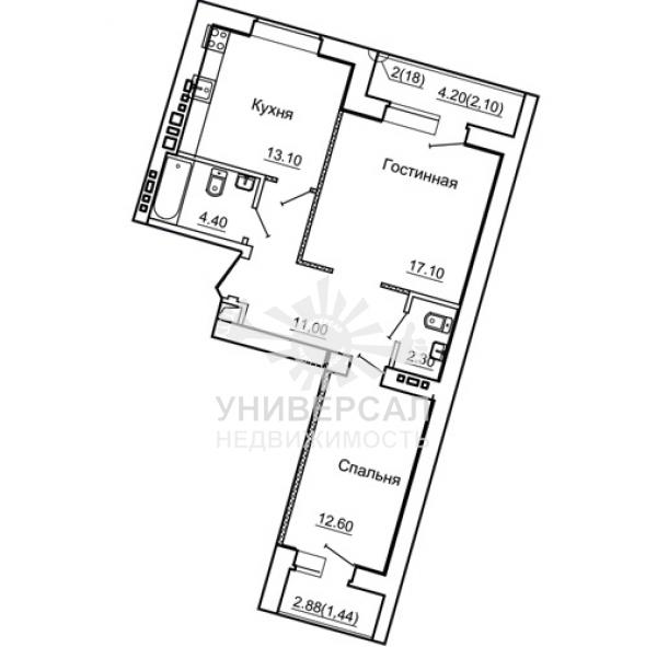 - Общая площадь: 68.0 м²