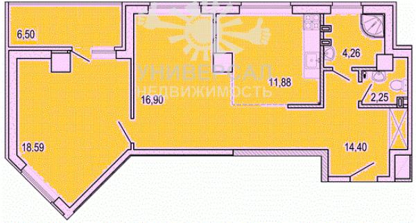 - Общая площадь: 59.0 м²