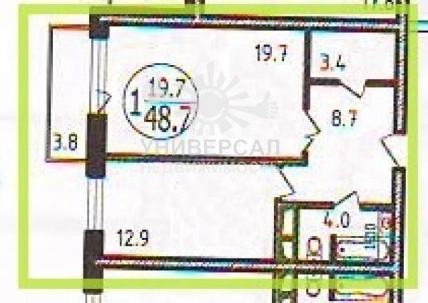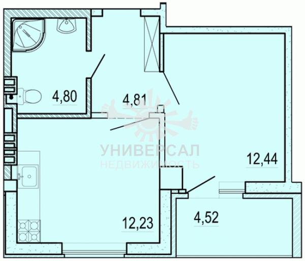 1-к квартира 46 м2