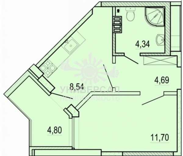 - Общая площадь: 33.0 м²