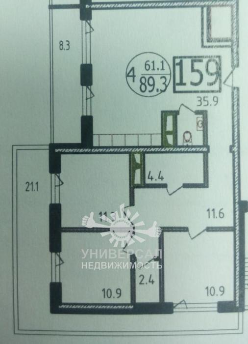 - Общая площадь: 89.0 м²