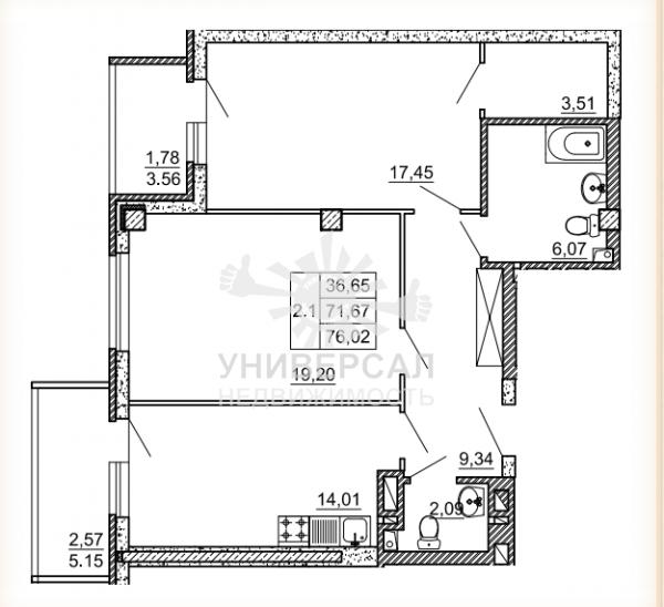 - Общая площадь: 71.0 м²