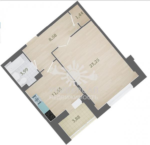 - Общая площадь: 43.0 м²
