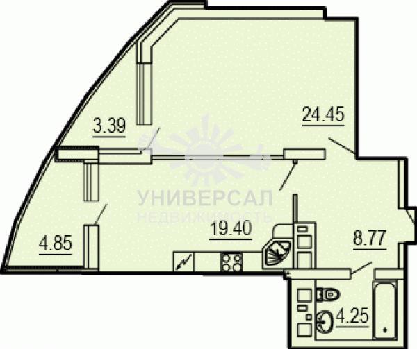 - Общая площадь: 33.0 м²