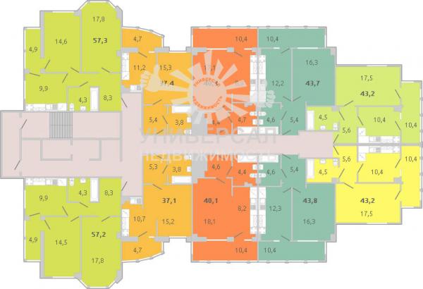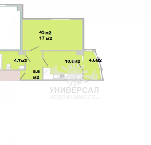 - Общая площадь: 43.0 м²