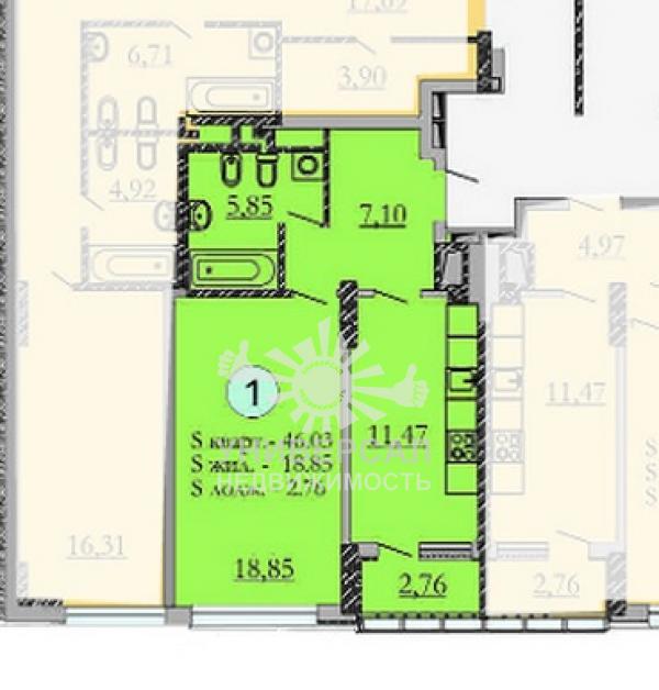 - Общая площадь: 46.0 м²