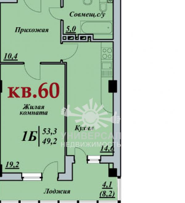 - Общая площадь: 60.0 м²
