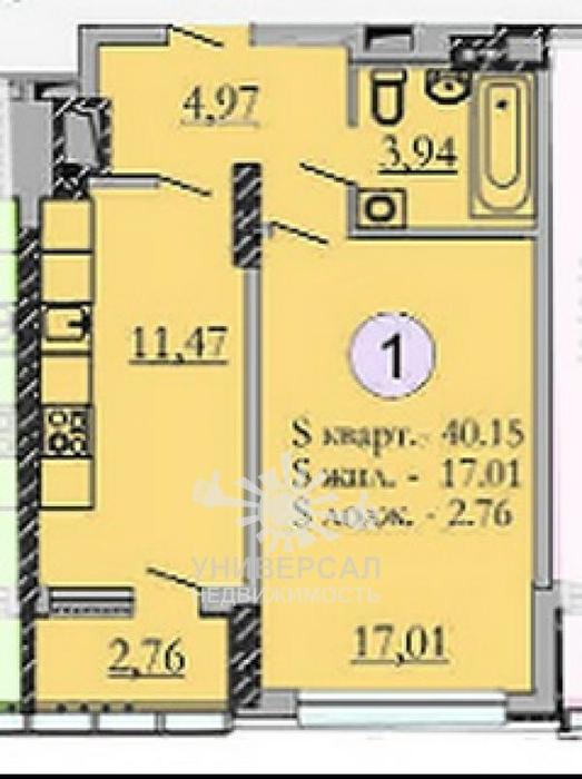 - Общая площадь: 41.0 м²