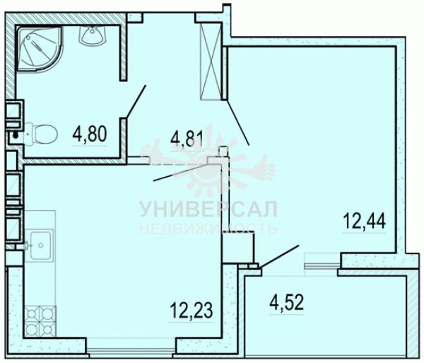 - Общая площадь: 44.0 м²
