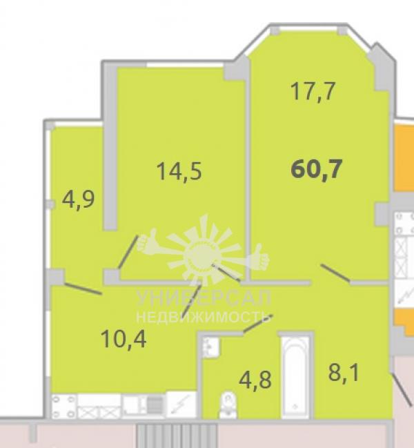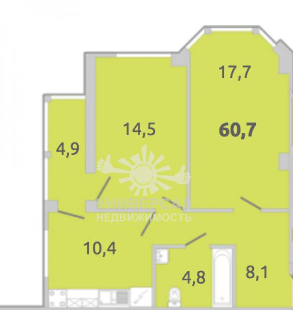 - Общая площадь: 60.0 м²