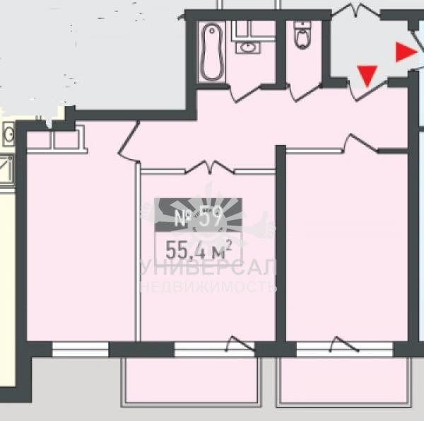 2-к квартира 54 м2