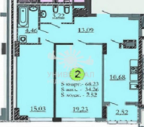 - Общая площадь: 68.0 м²