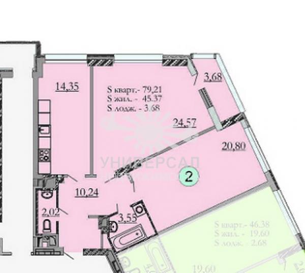 - Общая площадь: 79.0 м²