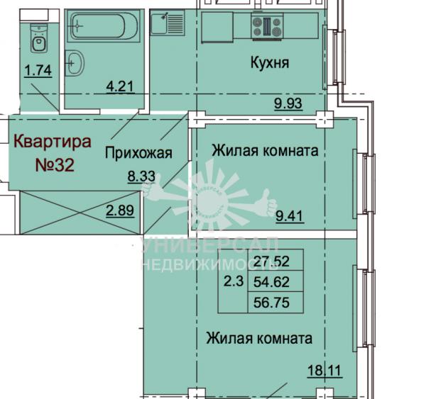 Продам квартиру в новостройке, 2-к, 7/10 эт., 2 890 000 руб., Киргизская, Чкаловский