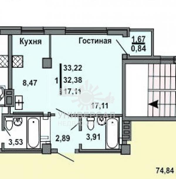 - Общая площадь: 33.0 м²