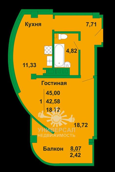 - Общая площадь: 45.0 м²