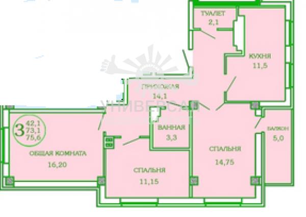 - Общая площадь: 75.0 м²
