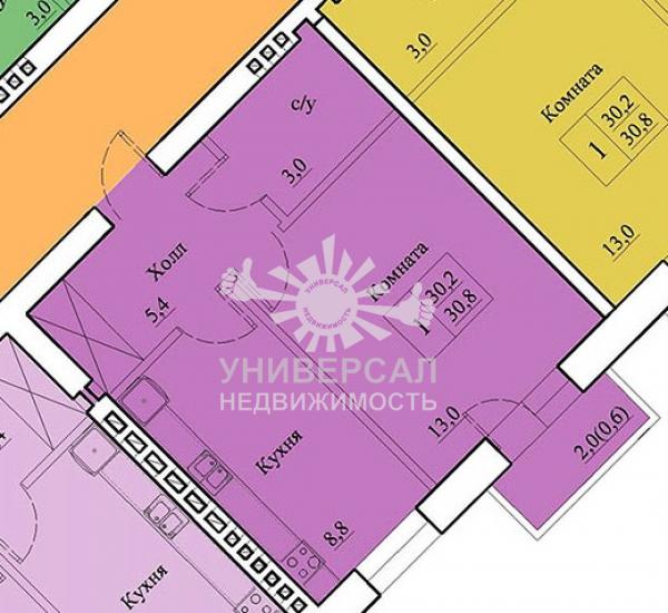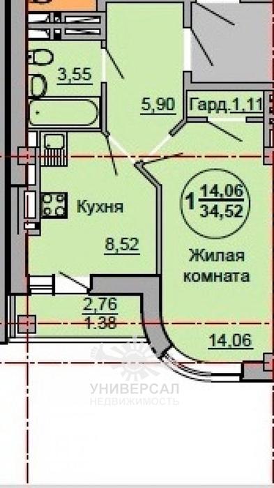 - Общая площадь: 33.0 м²