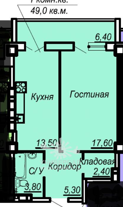 - Общая площадь: 49.0 м²