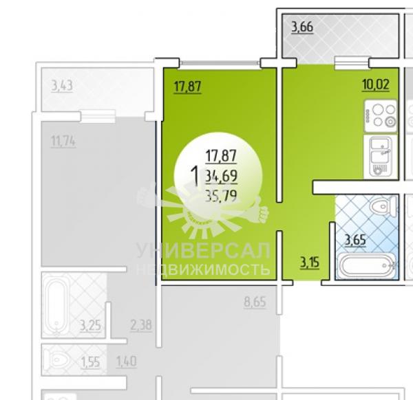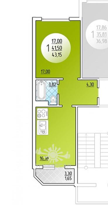 Продается квартира в новостройке, 1-к, 9/17 эт., 1 672 620 руб., Петренко, Суворовский