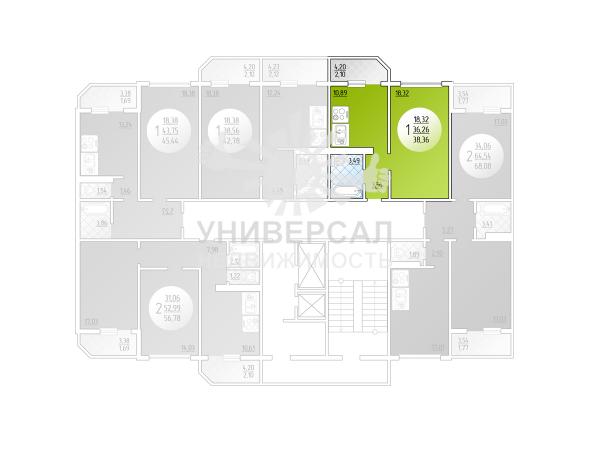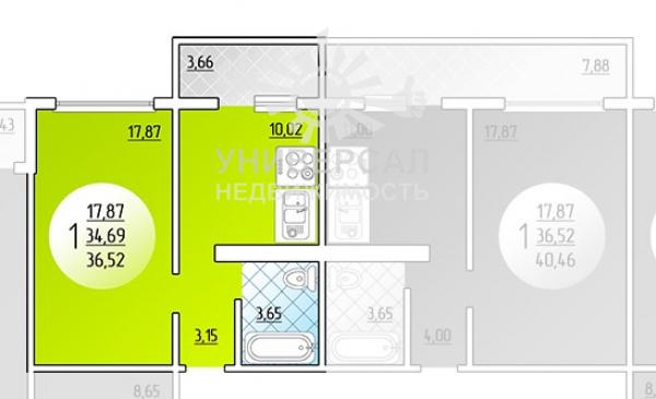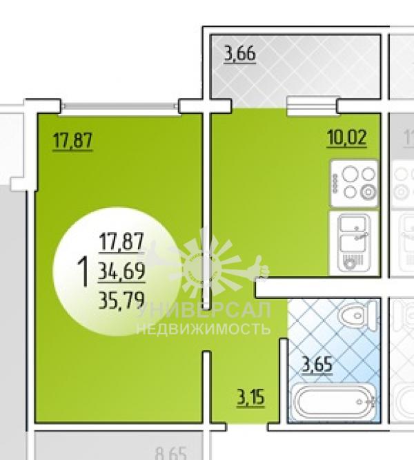 - Общая площадь: 36.0 м²
