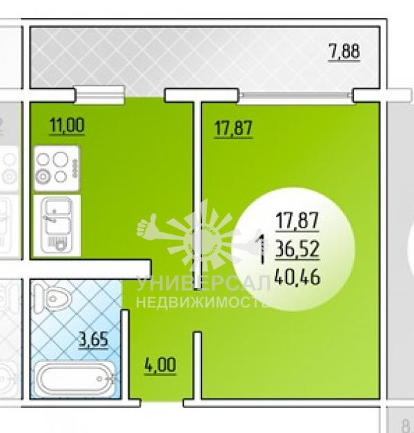 - Общая площадь: 40.0 м²