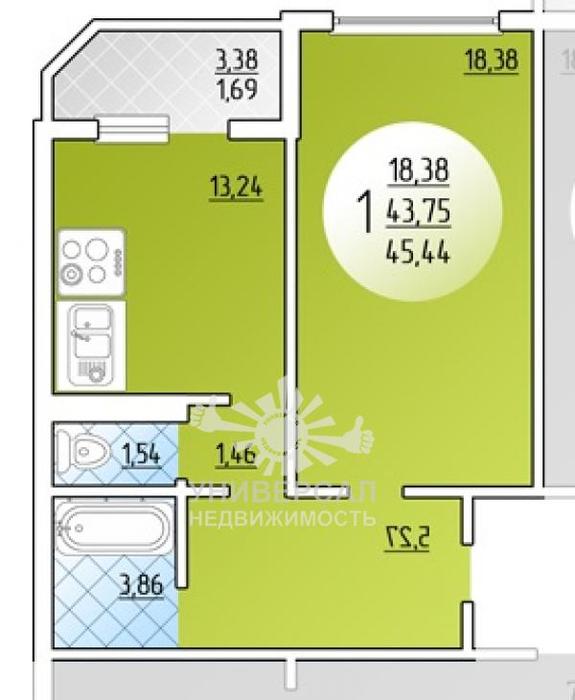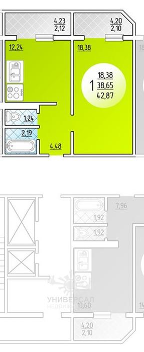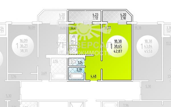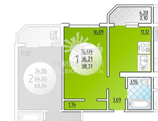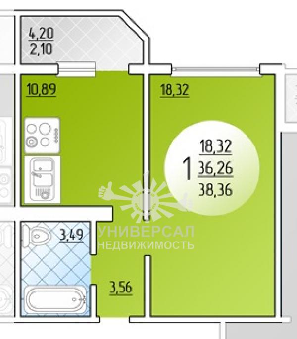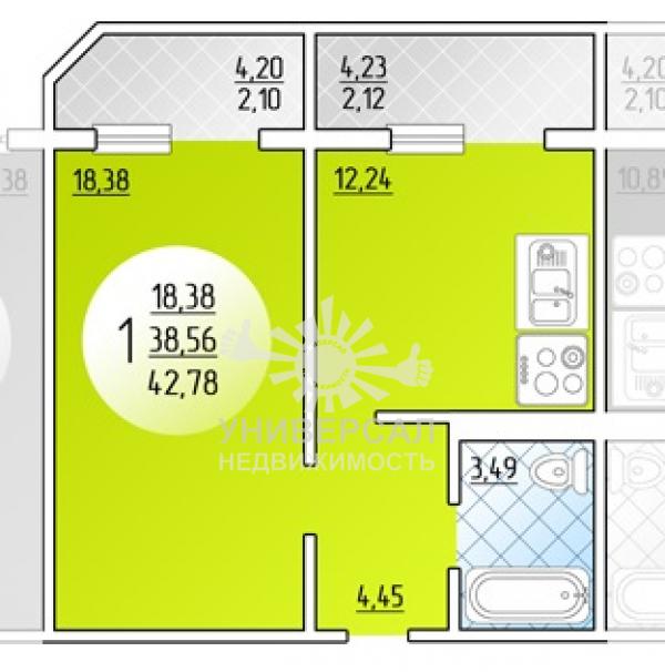 1-к квартира 38 м2