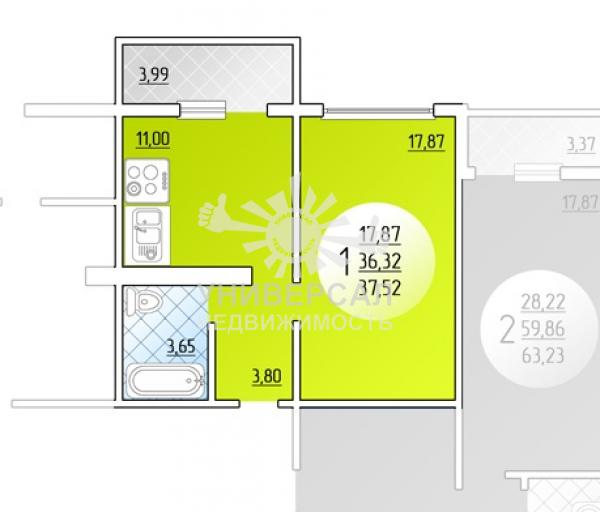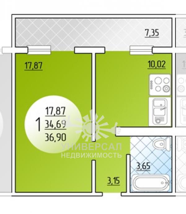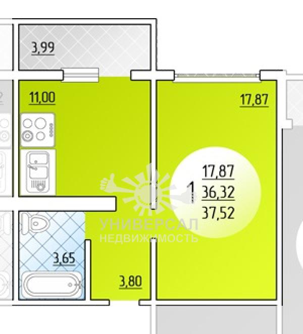 - Общая площадь: 37.0 м²