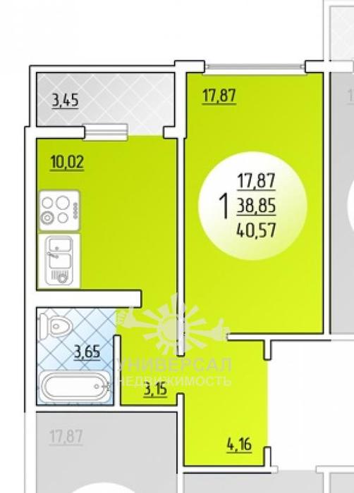- Общая площадь: 41.0 м²