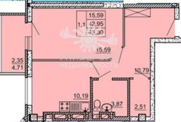 1-к квартира 46 м2