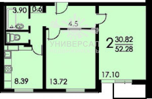 2-к квартира 54 м2
