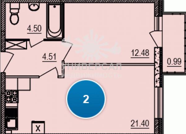 2-к квартира 52 м2