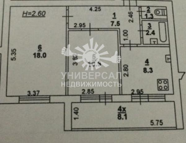 2-к квартира 46 м2