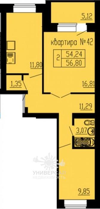 2-к квартира 56 м2