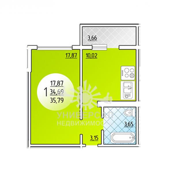 1-к квартира 38 м2