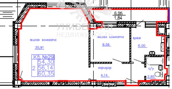 2-к квартира 56 м2