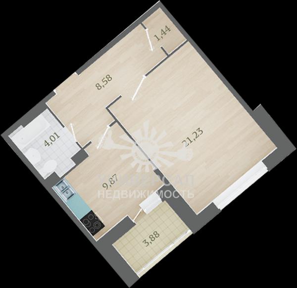 1-к квартира 46 м2