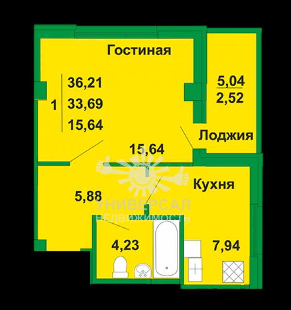 1-к квартира 35 м2